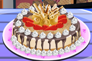根据游戏中的提示,鼠标点击食材放到正确位置制作巧克力蛋糕。