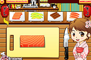 游戏中使用鼠标操作,点击或者拖动食材制作美味的寿司。