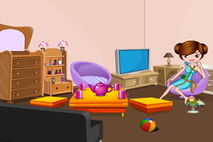 游戏中使用鼠标操作,拖动饰品放到指定位置布置房间