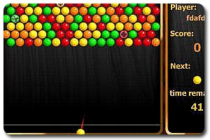游戏目标:当三个同色气泡排列在一起时即可消去如何开始:游戏加载完成后点击PLAY即可游戏操作说明:鼠标拖曳移动准心,左键点击发射气泡,当三个同色气泡排列在一起时即可消去,若消去的气泡上有道具则可启动特殊能力,包括剪刀、炸弹、网子等特殊能力等你妥善利用过关