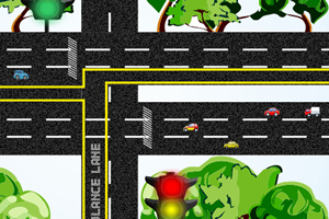 使用鼠标点击红绿灯指挥交通,不能让车子相撞。