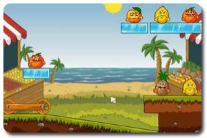 游戏目标:成功地使得水果两两相撞即可消灭,将所有水果都消灭掉即可过关如何开始:游戏加载完毕后点击PLAY两次即可开始游戏操作说明:游戏使用鼠标左键点击水果进行跳跃可撞碎冰块,使得水果两两相撞即可消灭,R键重玩