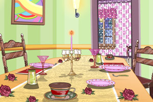 你是这家浪漫餐厅的主厨,你每天的工作是负责布置浪漫晚餐桌和制作浪漫晚餐,让每对情侣都能在这里留下浪漫美好的回忆。@@@鼠标点击布置餐桌,制作料理。