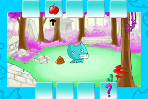 游戏中使用鼠标操作,左键点击工具或者食物等等物品照顾小怪。