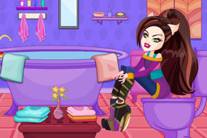 鼠标点击或者拖动道具来帮助小狼女将洗手间布置好吧。