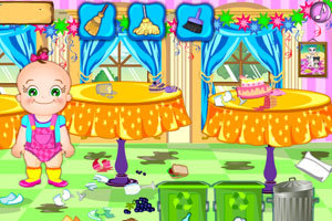 鼠标点击或拖动道具打扫房间,然后和他玩游戏。