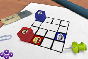 键盘方向键↑↓←→键控制红蓝方块移动,鼠标点击选择方块移动。