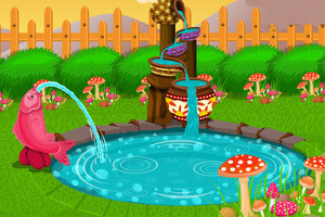 鼠标点击或者拖动道具制作一个池塘,然后给它布置漂亮。