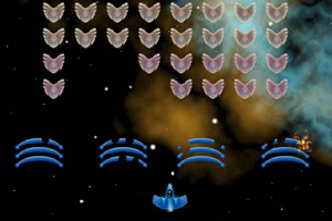 键盘方向键←→键控制左右移动,↑键或空格键射击,ESC键暂停游戏。