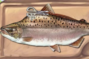 根据游戏中的提示,鼠标点击/拖动制作烤鱼料理。