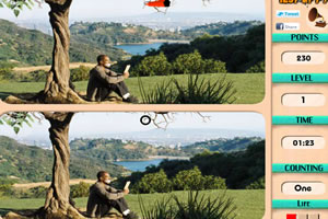 鼠标点击找出两图中的不同之处,点错地方扣分并减少一条生命。