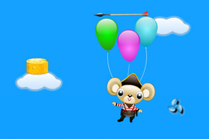 鼠标来控制风,点气球左边,老鼠就往右走,点气球的右边老鼠就往左走,要小心天上的箭。