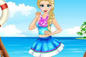 鼠标点击或者移动道具打扮去海边的艾莎。