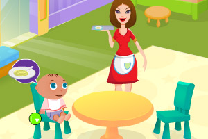 经营一家宝宝餐厅,主要服务的客人是宝宝,宝宝不会说话只会哭,服务他们可以小心哦!什么都要依他们的口味行事,稍有不对就会嚎天大哭,一天有几个这样的宝宝你的生意还做不做了。@@@鼠标点击操作,宝宝来了把宝宝移动到坐位上坐下,点击桌上的菜单让宝宝
