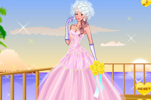 浪漫的婚礼即将在海边举行,快来为幸福美丽的新娘换上粉红色的婚纱礼服吧!