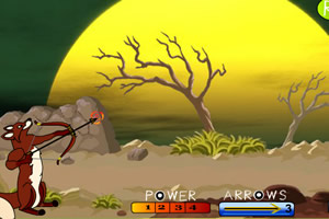 游戏中使用←→控制射箭的力度,↑↓控制射箭的角度,空格键射箭。