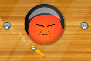 鼠标控制射击方向,按住鼠标左键调节力度,松开发射。黄色笑脸不能掉到洞里去哦~