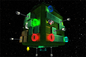 游戏使用鼠标进行操作,左键点击飞船前进,按住鼠标左键拖动360度转动视角观察六面体世界。
