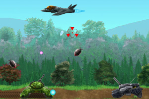 方向键←→控制坦克移动,鼠标瞄准射击。空格键释放氢弹。