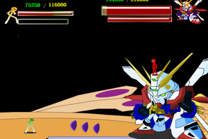 玩家1:按J键攻击,长按J键使出各种必杀技(按住的时间长短不同必杀技就不同),K键闪避。玩家2:4红色火柴人攻击,按小键盘5键控制高达进行攻击,长按5键使出各种必杀技(按住的时间长短不同必杀技就不同)。