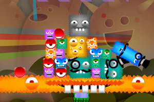 鼠标移到中上方的线条区域内,再移动鼠标控制怪物掉落位置,点击左键怪物掉落,R键重玩。