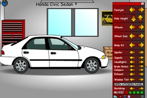 上方可选择不同车型,点击右边工具栏,选择不同的设备来装修你的宝贝车,最后会让你的车上场比赛。