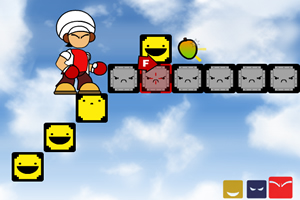 人物技能说明:1号人物可发射笑脸铺路,2号人物可锤地从而跳得更远,3号人物可攻击收集笑脸