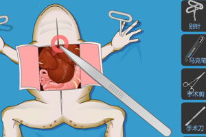 [鼠标左键]鼠标点击操作,按游戏提示,完成解剖青蛙的过程。另类的游戏体验。