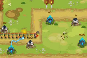 鼠标点击选择下方的炮塔放到合适的位置上,点击炮塔再点击右下方的“+”按钮进行升级,SELL出售。布置好后点击右上方的向右箭头开始迎敌。