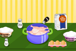 鼠标操作 根据游戏步骤的提示,使用鼠标点击制作新式炸鸡腿。