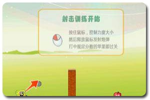 游戏目标:击中苹果如何开始:游戏加载完毕点击新的冒险操作说明:鼠标点击发射