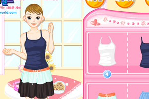 [鼠标左键]鼠标操作。打开玻璃窗就可以穿戴服饰到人物身上去了。右上角依次是选衣服、化妆、发型、饰品,左下角的“hint”是4款推荐的,点一下hint旁边的瓶子按钮就是等你全部装扮完后,MM的男友还会给MM评分。