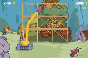 破坏发泄的游戏。控制挖泥机的吊臂疯狂乱舞,摧毁建筑物,键盘方向键控制车的移动,上下控制吊臂,空格键挥舞吊臂。