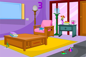 游戏中你被困在一间紫色的客厅里,客厅的地上有些孩子的玩具,线索会藏在哪里呢?想办法逃离出去吧!
