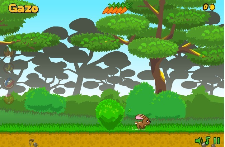 鼠标左右移动兔子加速减速,点击左键或Space跳跃(可二连跳)收集萝卜和越过障碍。