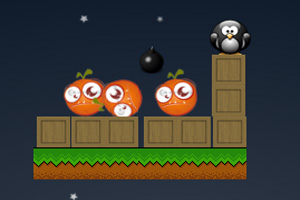 游戏使用鼠标点击放置炸弹到怪水果附近,点击引爆器(红色箱子)或按空格键引爆炸弹,将怪水果炸出屏幕,小心不能让企鹅掉下去,失败后点击下方的弯箭头重置关卡,箱子上的数字代表可用的炸弹数。