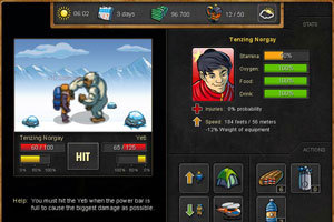 ↑↓←→控制探险队员移动,鼠标点击攻击或者购买物品。