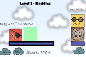鼠标拖曳有标示的关卡代码星星到右上角框框?妊」亍J占?乜?鹊男切牵?懦?焐??尽?将猴子积木准确的放在绿色框框?妊橹ぁ