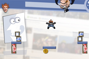 鼠标移动控制瞄准,左键点击发射人物(次数有限),箭头为物品之后的运动方向。R键重玩。