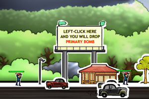 游戏中使用鼠标选择画面中的投弹位置并点击左键投掷炸弹。