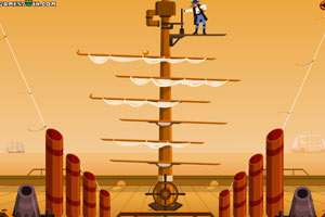 游戏中使用鼠标点击掉落小球,键盘方向键←→控制帆木移动。