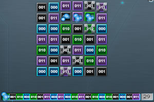使用鼠标左键点击两个不同的代码互换位置,使三个或三个以上的图案在同一直线上进行消除。