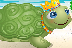 游戏中使用鼠标操作,点击服饰给小海龟换装打扮。