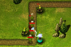 电光塔前线守城4,游戏的画面及音乐实在让人想不到这是一款TD游戏,绿地、小树、大石头、再加上各种好听的鸟鸣声!@@@点PLAY开始游戏,点击画面左上角的红色圆圈选关,选择难度开始游戏。游戏中使用鼠标操作,拖动画面右侧的武器到地图中合适的位置