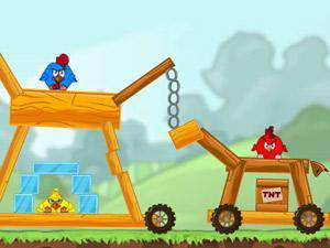左键操作鼠标左键点击破坏木头冰块等,让掉落的石头或者木块把所有鸡砸掉