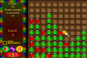 使用鼠标点击进行游戏,至少2个相同颜色小球消去,5个以上消去获得奖励分数