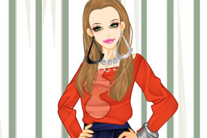 游戏中使用鼠标操作,鼠标点击化妆品给女孩美容,点击选择服饰给女孩装扮。