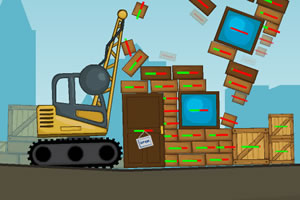 键盘方向键←→控制移动,↑↓控制铁球的高度,利用铁球摧毁建筑。