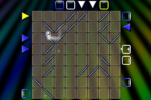 鼠标点击蓝色的线条改变方向,再点击框外面的三角形图案发出小球,让小球找到相同颜色的方框。