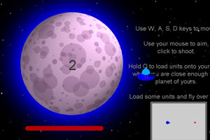 在茫茫宇宙中,外星人之间也会发生战争,相互争夺资源,人口,地盘,现在由你控制自己的星球,去占领别人的星球。@@@w,a,s,d控制移动,q是吸取自己星球的能源,e是输出能源占领星球。鼠标左键为射击。